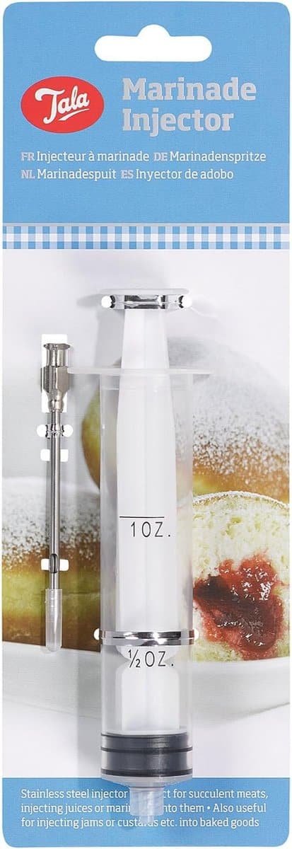 Deze injectiespuit is ideaal voor het eenvoudig en egaal toevoegen van marinades of vloeibare smaakmakers direct in vlees, gevogelte of vis. Een essentieel hulpmiddel voor thuiskoks die op zoek zijn naar maximale smaakdiepte. Dit betrouwbare keukenaccessoire is ontworpen voor efficiëntie en gebruiksgemak, waardoor het marineren een stuk eenvoudiger wordt. Geschikt voor dagelijks gebruik en een waardevolle toevoeging aan elke keukenuitrusting.