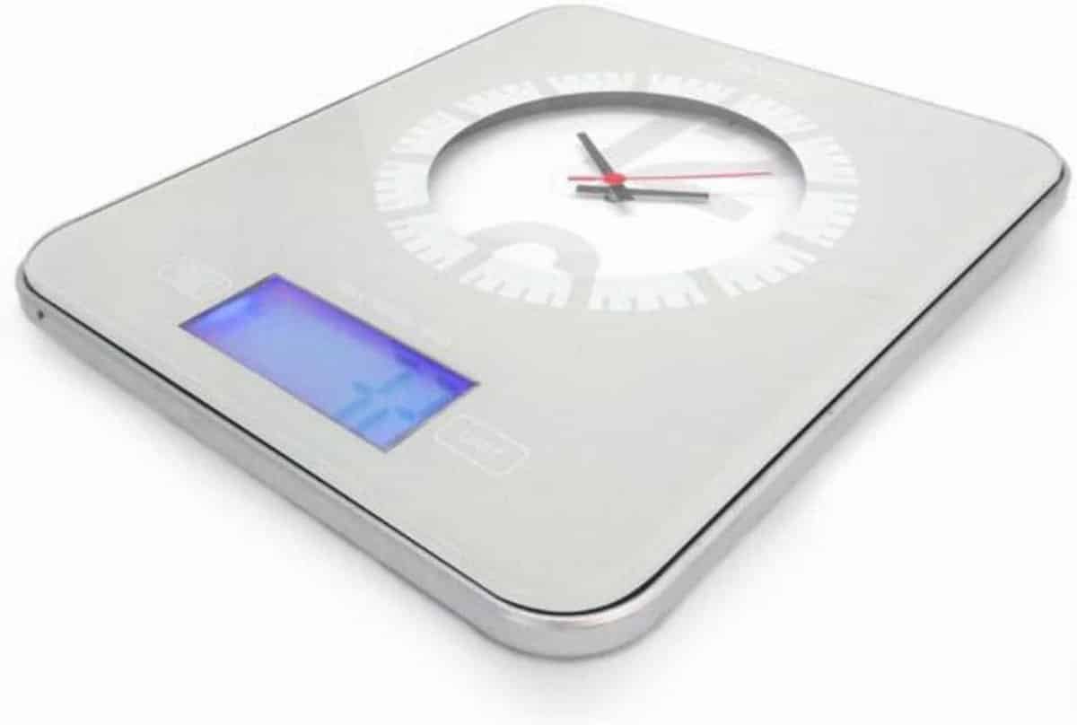Wandklok Weegschaal – Keuken Accessoire – Nauwkeurig Afwegen – Geïntegreerd Horloge – Hoge Precisie – Grijs