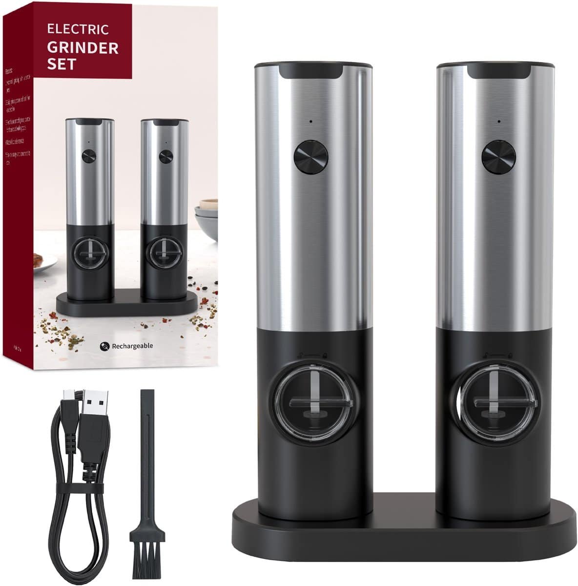 2-delige oplaadbare elektrische zout- en pepermolenset - Automatische molen voor bediening met één hand, geschikt voor in de keuken, op de camping, tijdens picknicks, herbruikbaar, eenvoudige bediening met één knop