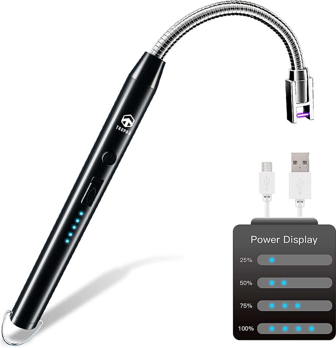 Aansteker kaarsen – Zinaps Arc Aansteker, USB oplaadbare elektrische aansteker, winddichte vlamloze kaarsaansteker, stokaansteker voor kaarsen, grill, keuken, gaskachels (zwart) (WK 02149)