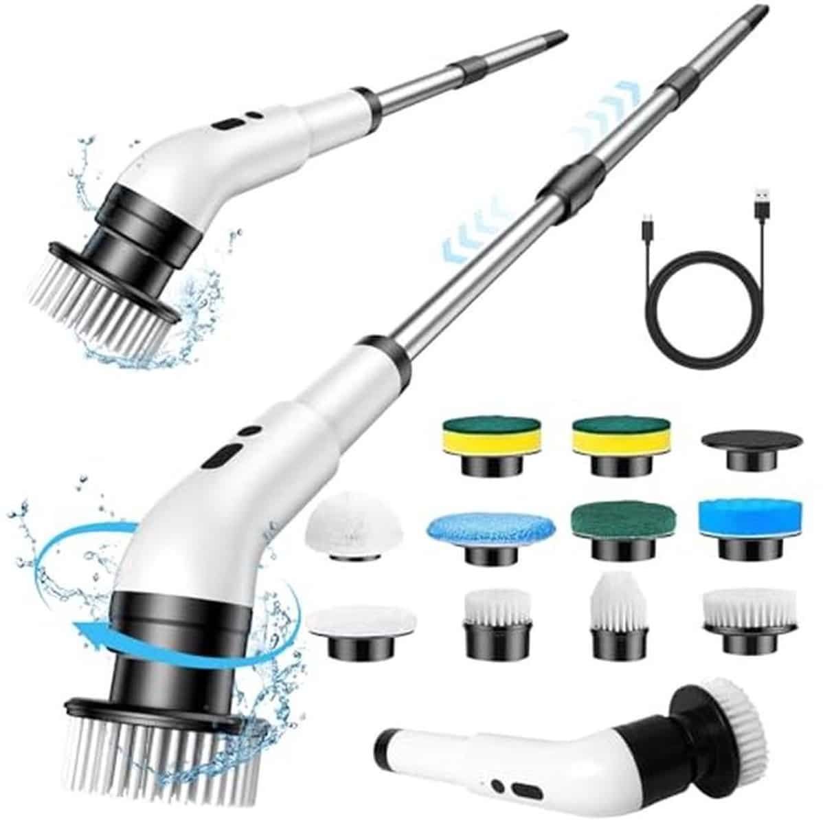 Auveach Spin Power Elektrische reinigingsborstel, 10-in-1, elektrische draadloze poetsborstel, 3 snelheden, mopset met 10 verwisselbare borstelkoppen voor badkamer, keuken, auto, tegelvloer