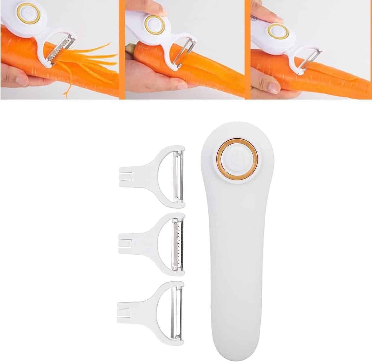 Brenzoos – Elektrische Fruit- en Groenteschiller Handmatig Met Drie Roestvrijstalen Mesjes voor Keuken – Appel Wortel Aardappel