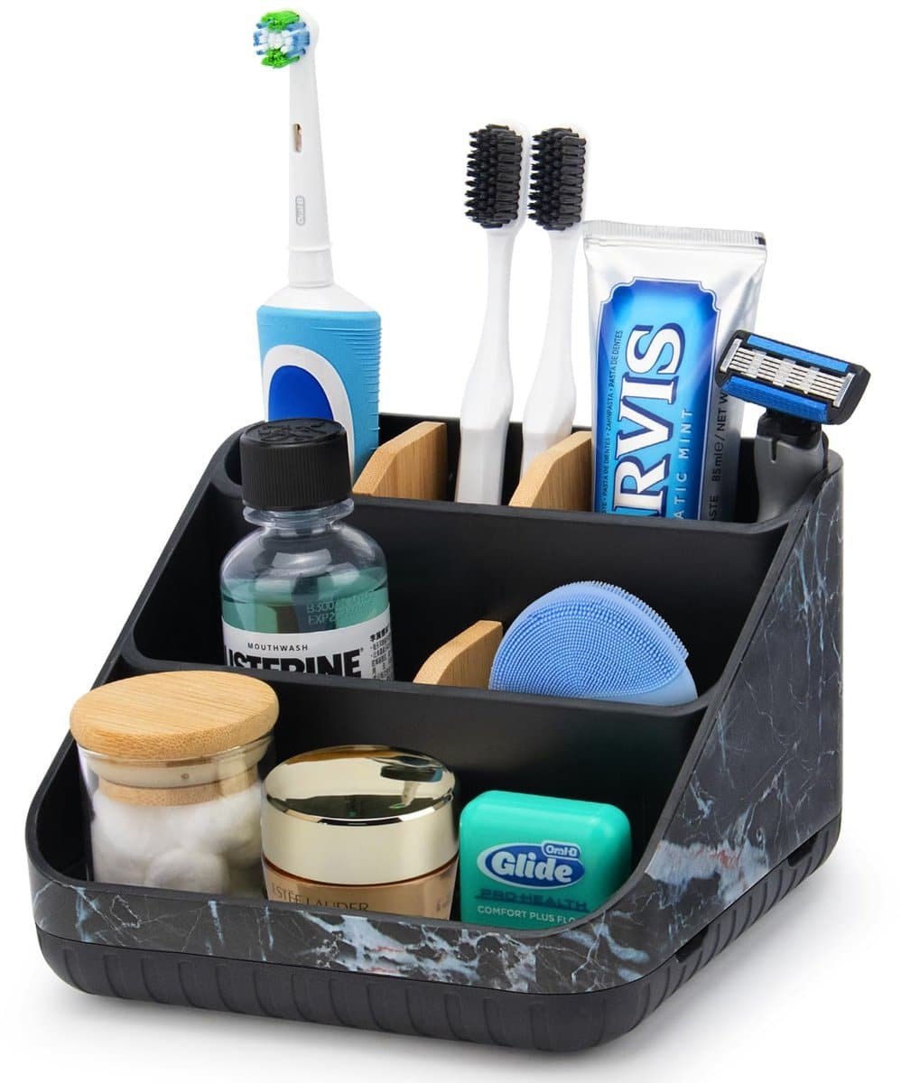 PARKMANI Tandenborstelhouder voor badkamerorganizer, elektrische tandenborstelhouder met afvoergat, verwijderbare tandenborstelorganisator voor badkamer, keuken en gezin (wit marmer)