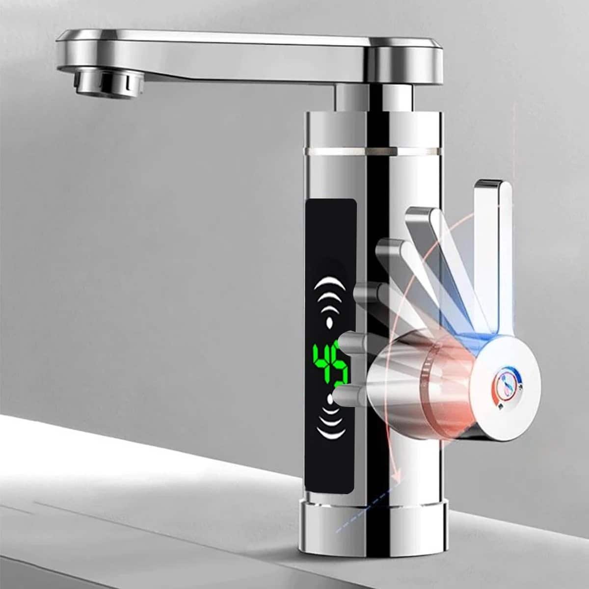 Collox Elektrische kraan – Onmiddelijk warmwaterkraan – Keuken mengkraan – Met temperatuurweergave LED scherm – 3000 W – Temperatuur 25-55 graden – Zilver – 18,5×6,5×20,5 cm
