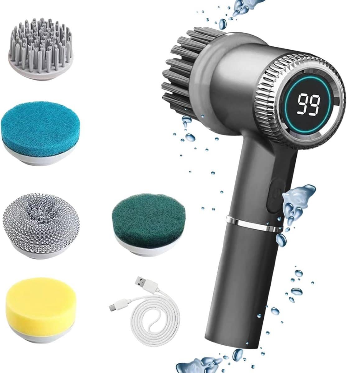 Draadloze Elektrische Reinigingsschrobber met 5 Vervangbare Hoofden voor Tegels, Badkamer en Keuken