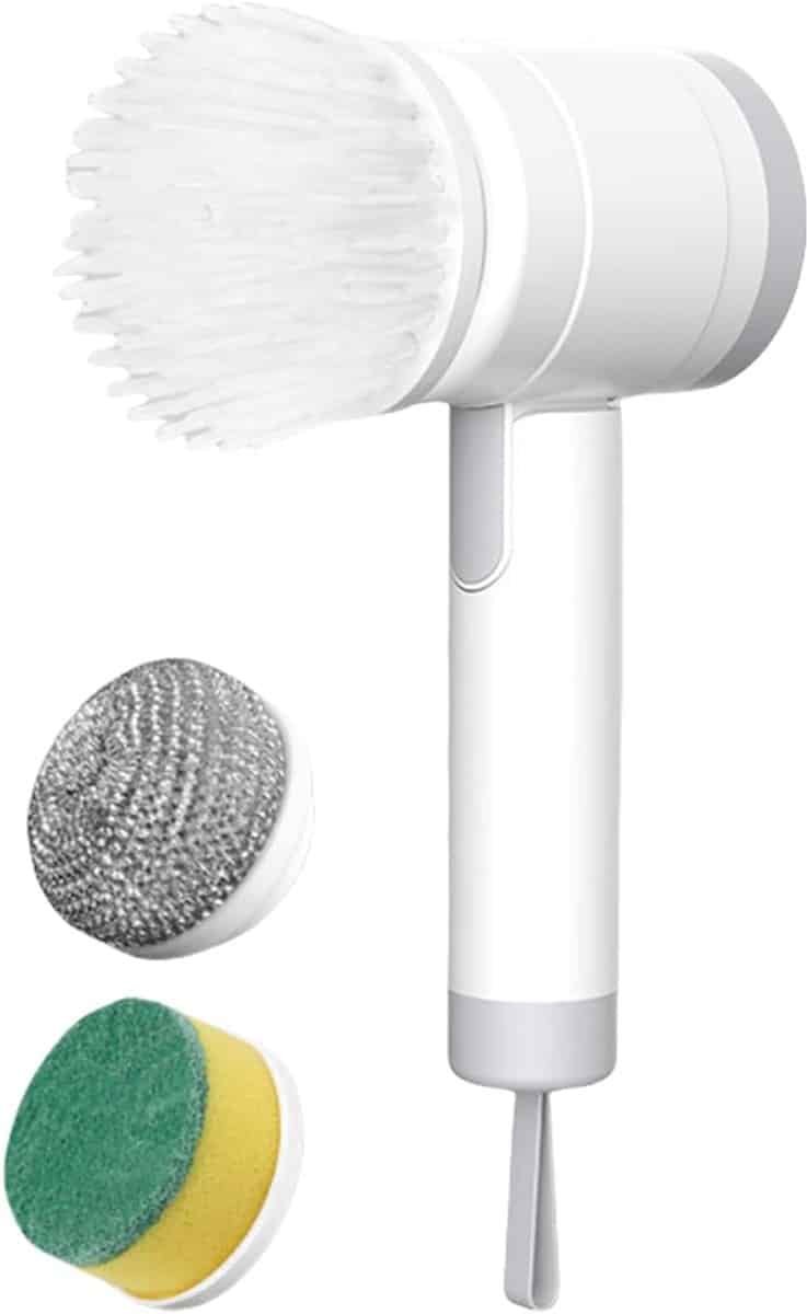 Draadloze elektrische schoonmaakborstel – Oplaadbaar en opvouwbaar design – Voor badkamer, keuken en afwas – Inclusief 3 verwisselbare koppen – Waterdicht en krasvrij (wit)
