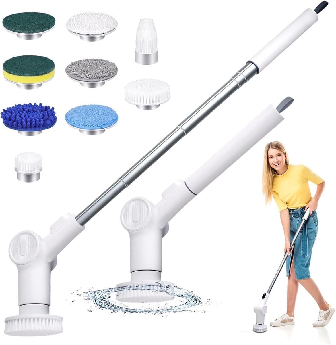 Draadloze Elektrische Schrobber met Lange Steel en 9 Opzetborstels – Krachtige Reiniging Badkamer, Keuken en Tegels