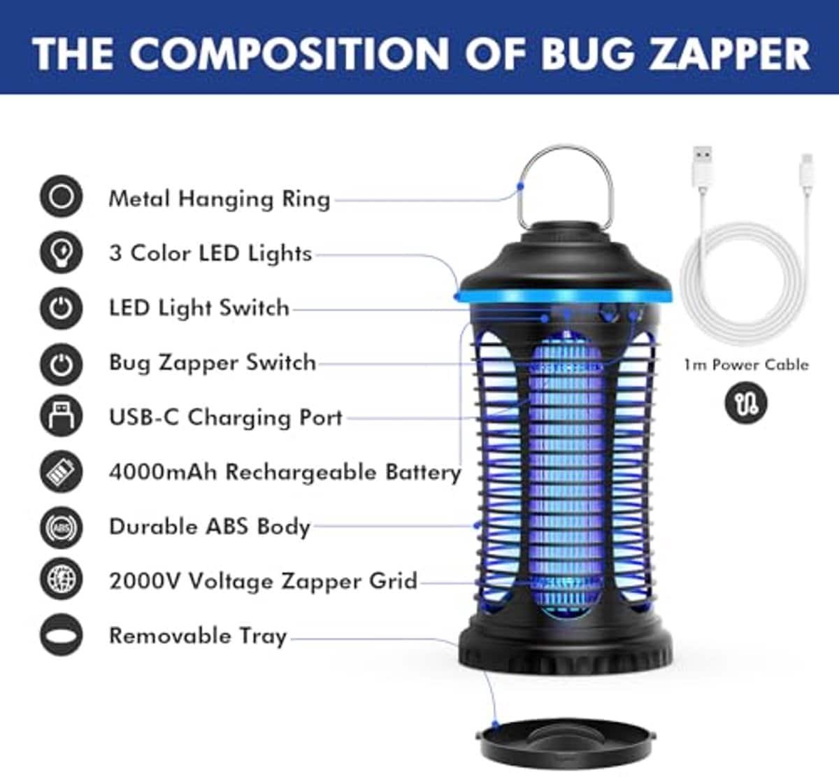 Draagbare Elektrische Muggenlamp – 4000 mAh Oplaadbaar met LED Licht voor Binnen en Buiten – Ideaal voor Tuin, Camping en Keuken