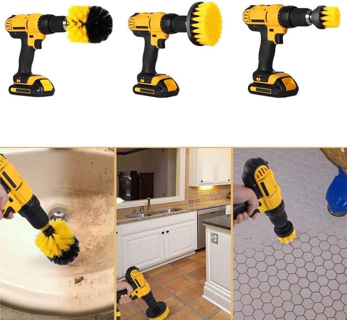 Elektrische Boor Reinigingsborstels Scrub Borstel Attachment Kit - Reinigen van Autobanden, Keuken, Badkamer - Geel - 3 STKS - Geschikt voor Tapijtmat - 2/3.5/5 inch