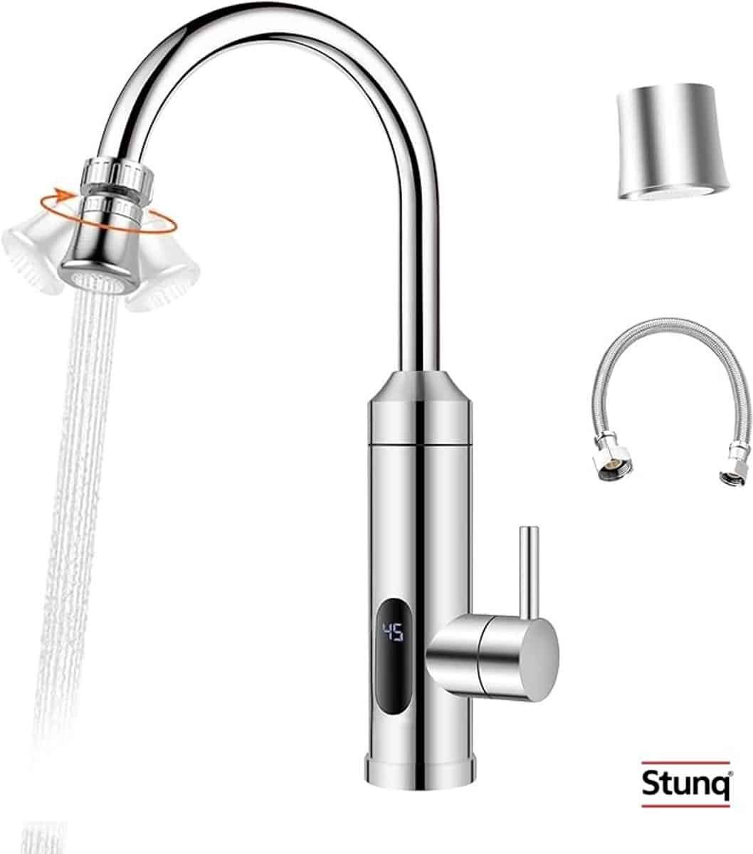 Deze elektrische doorstroomkraan biedt direct warm water wanneer je het nodig hebt. Perfect voor in de keuken, badkamer of tijdens kamperen.