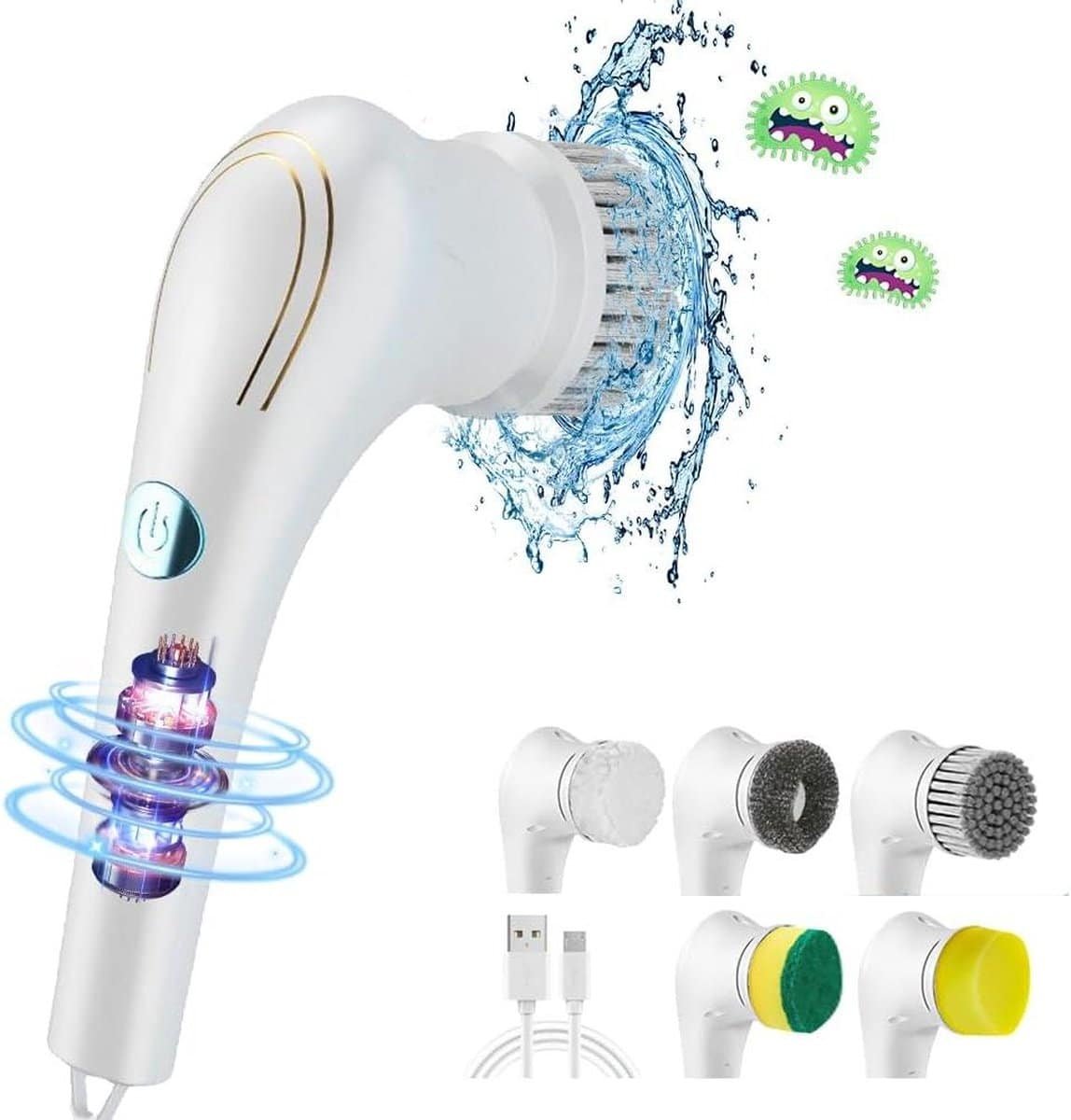 Elektrische draadloze Reinigingsborstel – 360 graden draaibaar – 5 verwisselbare borstelkoppen – IPX7 waterdicht – spin scrubber reiniging – keuken tegels badkamer