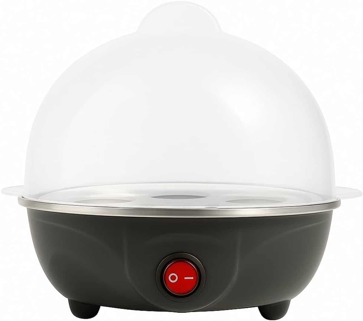 AUTOMATISCHE VEILIGHEIDS-UITSCHAKELING: Onze geavanceerde eierkoker bevat een slimme automatische uitschakelfunctie die het apparaat uitschakelt zodra het water is verdampt, om oververhitting of droogkoken te voorkomen. Dit keukenapparaat zorgt dagelijks
