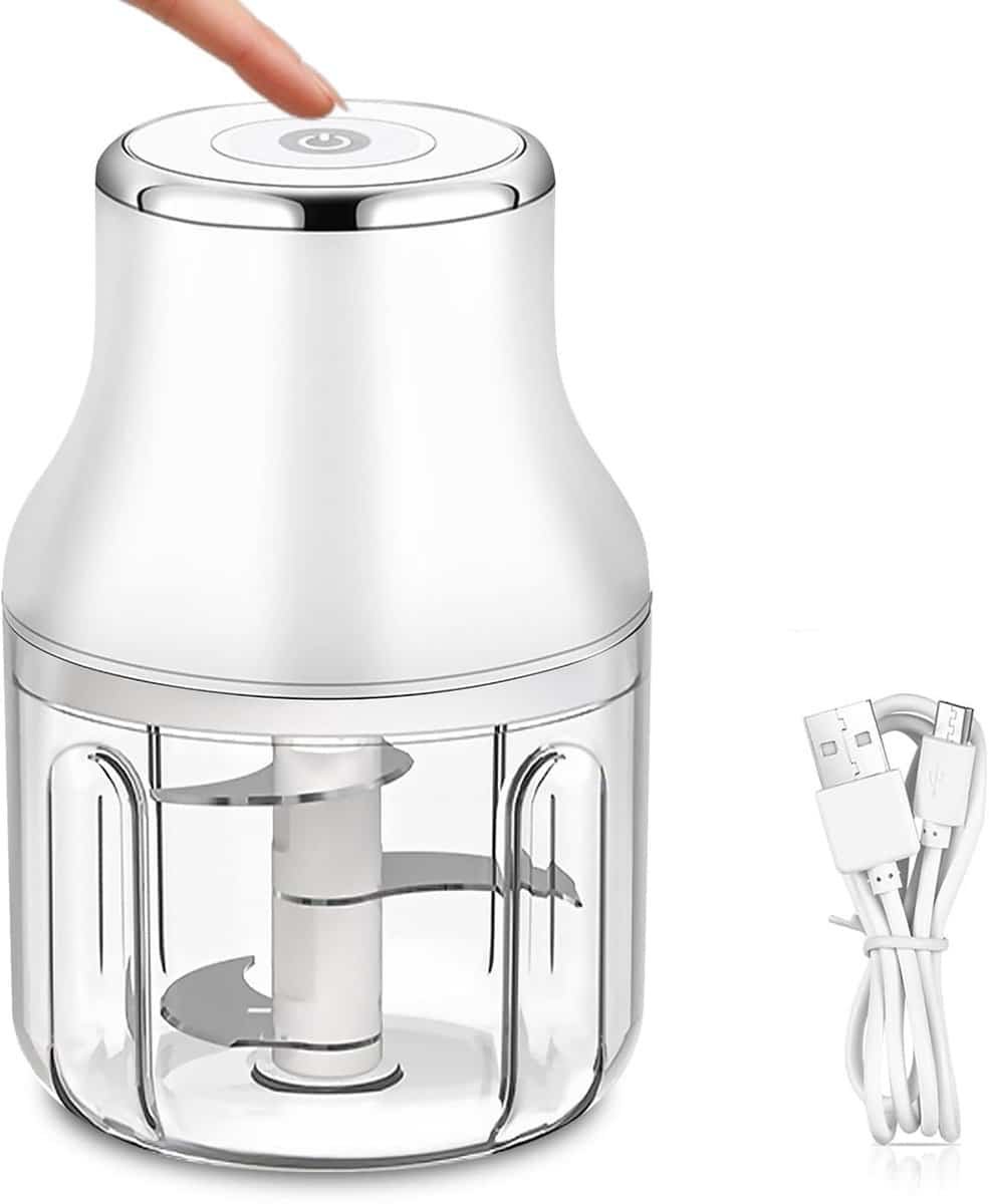 Fast shredding in seconds: With the electric chopper you save time and effort when cutting. Simply fill with food, close the lid and start at the touch of a button. Ideal for onions, herbs, fruits, vegetables and more – the perfect onion cutter for every day Wireless and flexible: thanks to USB-C charging and integrated 1200 mAh battery, the chopper is always electrically ready for use at home, camping or on the go. Can be used without a power connection and easy to carry thanks to the compact design. Powerful blades for precise results: the onion chopper has three high-quality stainless steel blades that reliably shred even harder ingredients such as carrots or meat. For example, dips, pesto, sauces and baby food can be done in no time. Compact, easy to clean and BPA-free: With a capacity of 250 ml, the electric chopper is perfect for small portions. All removable parts are dishwasher safe and BPA free. Cleaning is quick and hygienic, ideal for everyday use in small kitchens. Versatile kitchen aid for every need: whether as shredded kitchen electric, onion chopper or mini mixer, this electric chopper is a real all-rounder. Also suitable for meat, nuts, celery, tomatoes and more. The compact electric chopper should not be missing in any kitchen.
