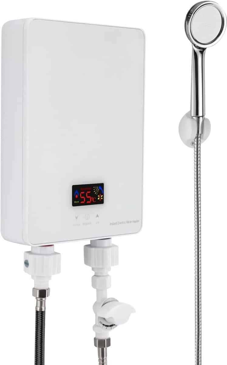 Direct warm water met deze krachtige 5000W elektrische doorstroomverwarmer. Ideaal voor de keuken, badkamer of douche. Dit geïntegreerde model werkt met een moderne Touch Control bediening en levert water tot 55°C. Gemaakt van roestvrij staal en uitgevoerd in wit, met een verticale stijl. De verwarmingsmethode maakt gebruik van een gietaluminium verwarmingselement voor snelle en efficiënte prestaties. Wateraansluiting is aan de onderkant. Wordt geleverd inclusief douchekop, in- en uitlaatslangen, een Engelse handleiding en alle benodigde installatieaccessoires. Belangrijke specificaties: Nominale druk 0.6 MPa, IPX4 waterdichtheid. Vereist voor installatie gespecialiseerde koperen kern bedrading (2.5mm² en 4mm²).