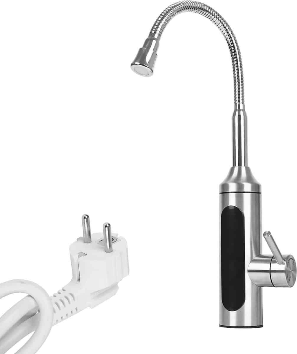 Deze elektrische kraan is perfect voor de badkamer wastafel of kleine keuken. Met een vermogen van 3000W verwarmt de kraan het water snel tot een temperatuur tussen de 30-60 °C. Het ontwerp omvat milieuvriendelijk koper roestvrij staal en ABS met een IPX4 waterdichtheid voor extra veiligheid. Voorzien van een zeer gebruiksvriendelijk LED-display voor temperatuurweergave en een praktische 360-graden draaifunctie. Inclusief 12 m netsnoer en volledige montageset. Installatie moet verticaal plaatsvinden. Let op: laat enkele seconden koud water lopen voordat u warm water gebruikt.