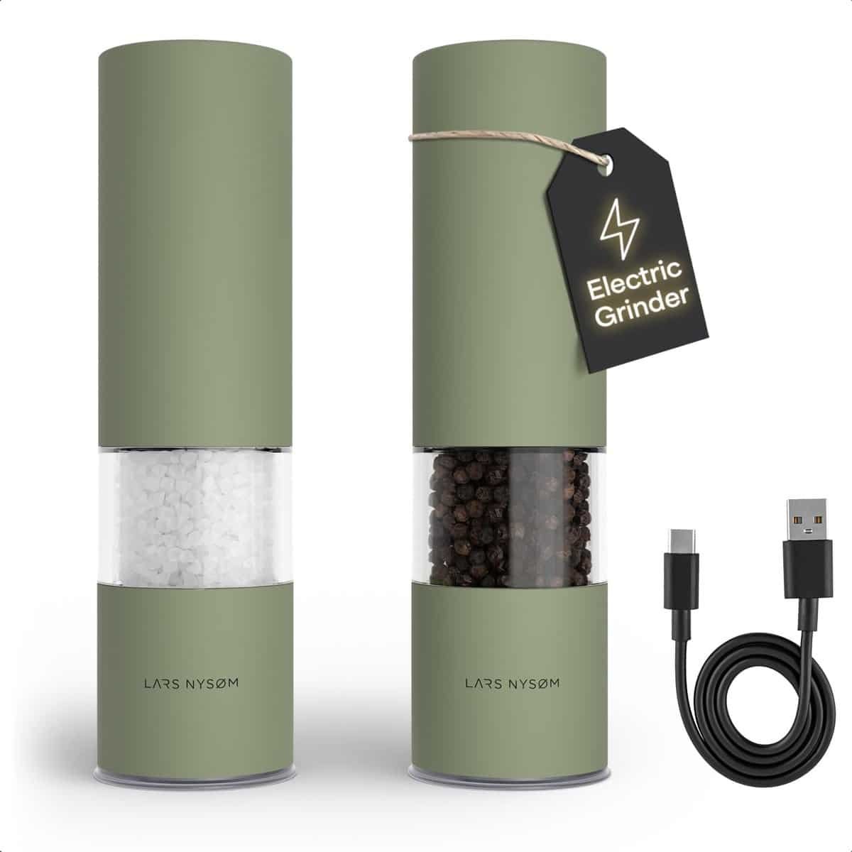 Elektrische Kruidenmolens – Automatische Molens – Keuken Gebruik – Instelbare Keramische Molen – 5.2 x 19 cm – Sage Green