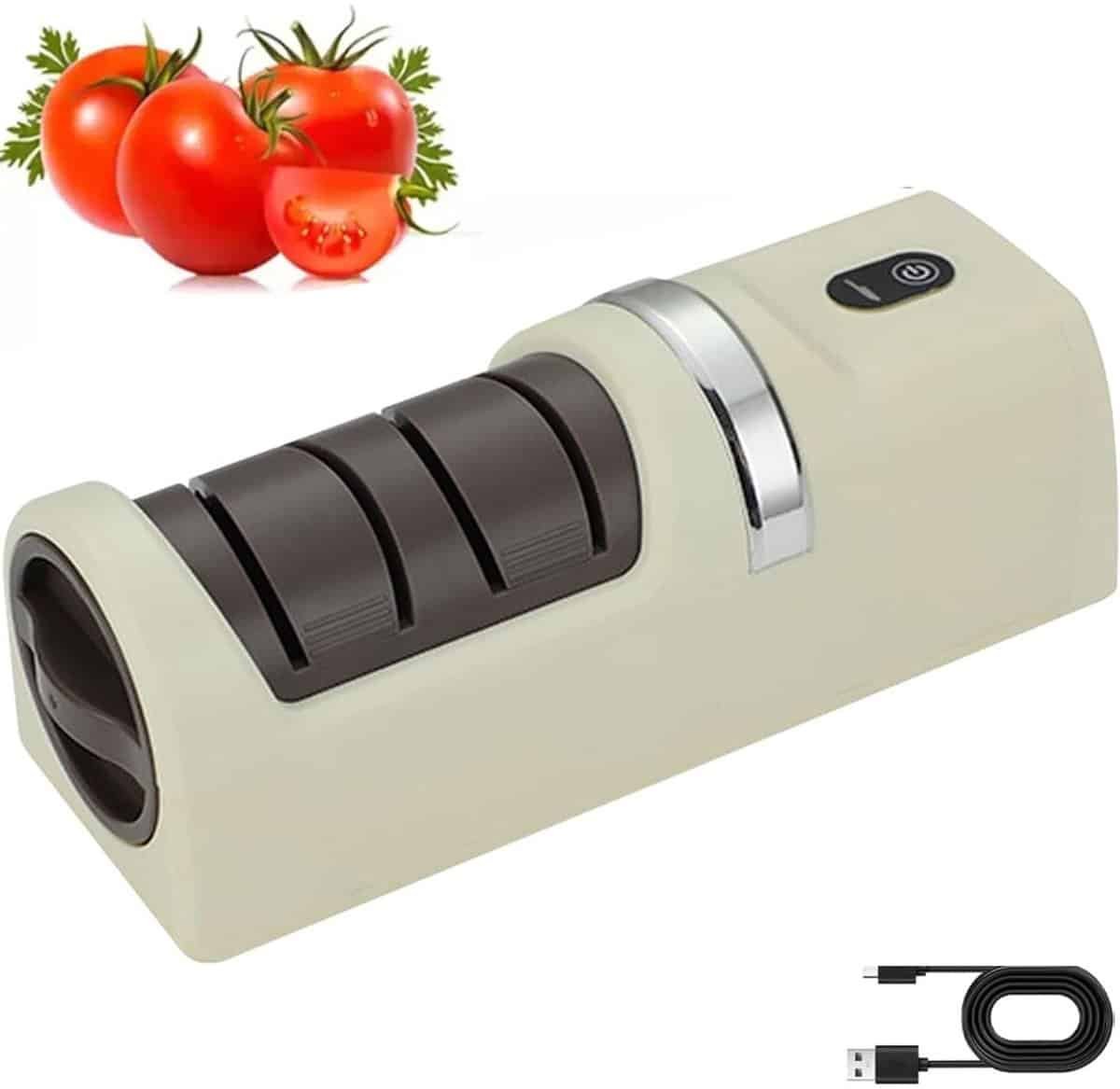 Elektrische Messenslijper – Oplaadbare – Messenslijper Elektrisch – Knife Sharpener – Doortrekslijper – Messen Slijper – Messenslijpers – Geschikt voor mesonderhoud – Voor Huishoudelijk Gebruik Keuken Wonen Camping Bakken – Wit
