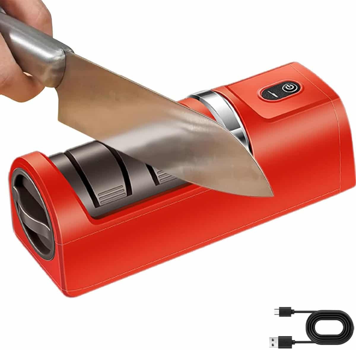 Elektrische Messenslijper – Oplaadbare – Messenslijper Elektrisch – Knife Sharpener – Doortrekslijper – Messen Slijper – Messenslijpers – Geschikt voor mesonderhoud – Voor Huishoudelijk Gebruik Keuken Wonen Camping Bakken – Rood