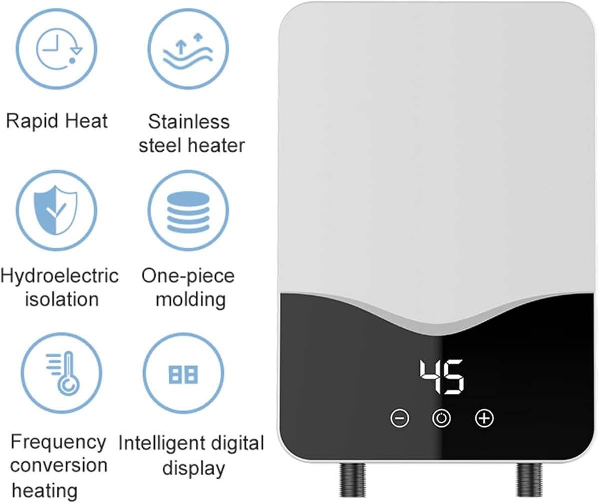 Geniet direct van warm water met deze efficiënte elektrische doorstroomboiler (mini-boiler). Verkrijgbaar in 5500W en 7000W varianten, deze boiler levert direct warm water zonder voorverwarmtijd, wat energieverlies voorkomt. Geschikt voor 220V aansluiting en ideaal voor gebruik in de badkamer of keuken. De boiler beschikt over intelligente constante temperatuurregeling voor stabiele warmwatercomfort, zelfs bij wisselende stroming. Veiligheid staat voorop met dubbele anti-elektrische wand, aarding-, overspannings-, verbrandings- en oververhittingsbeveiliging. Met IPX4 waterdichtheid en een ruimtebesparend wandmontageontwerp is installatie eenvoudig. Geen ventilatie nodig, dus perfect voor diverse ruimtes. Ervaar constant warm water, onmiddellijk en energiezuinig.