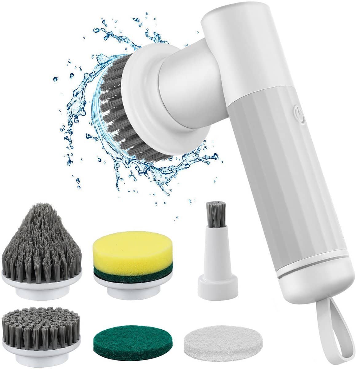 Elektrische reinigingsborstel – Huishoudelijk gebruik voor keuken – Schoenreinigingsborstel – 5 Verwisselbare opzetstukken – Multifunctionele siliconen reinigingsborstel – Toepasbaar voor thuisgebruik – Glas, Tegels, Keuken, Badkamer, Badkuip