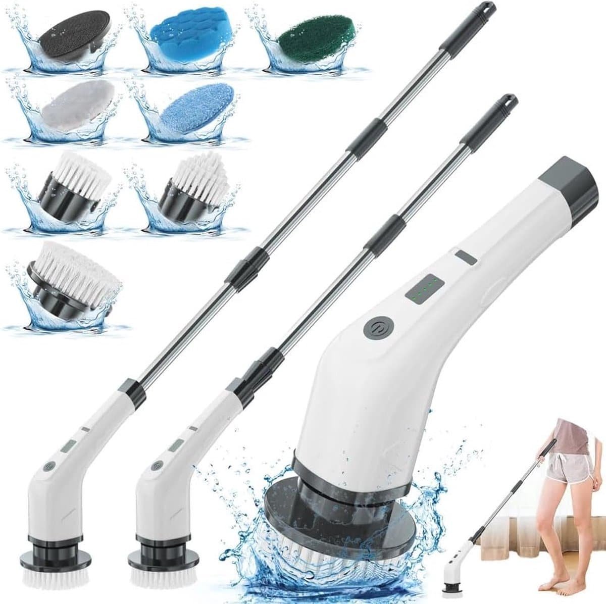 Elektrische schrobber met 2 snelheden en 8 verwisselbare borstels voor dieptereiniging in badkamer en keuken