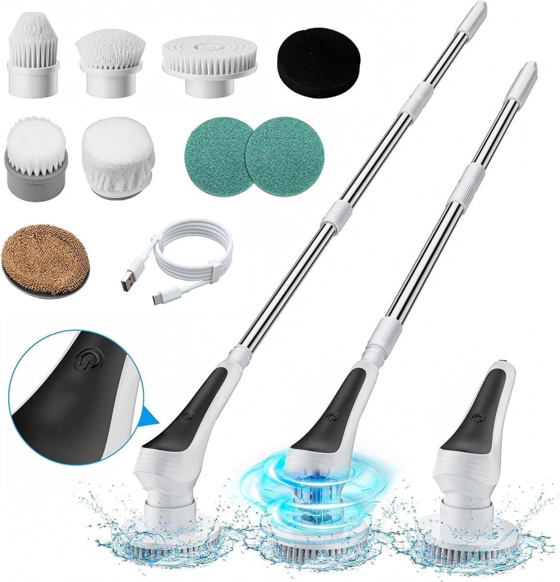 Elektrische Schrobber met Verstelbare Steel en 10 Borstels voor Badkamer en Keuken