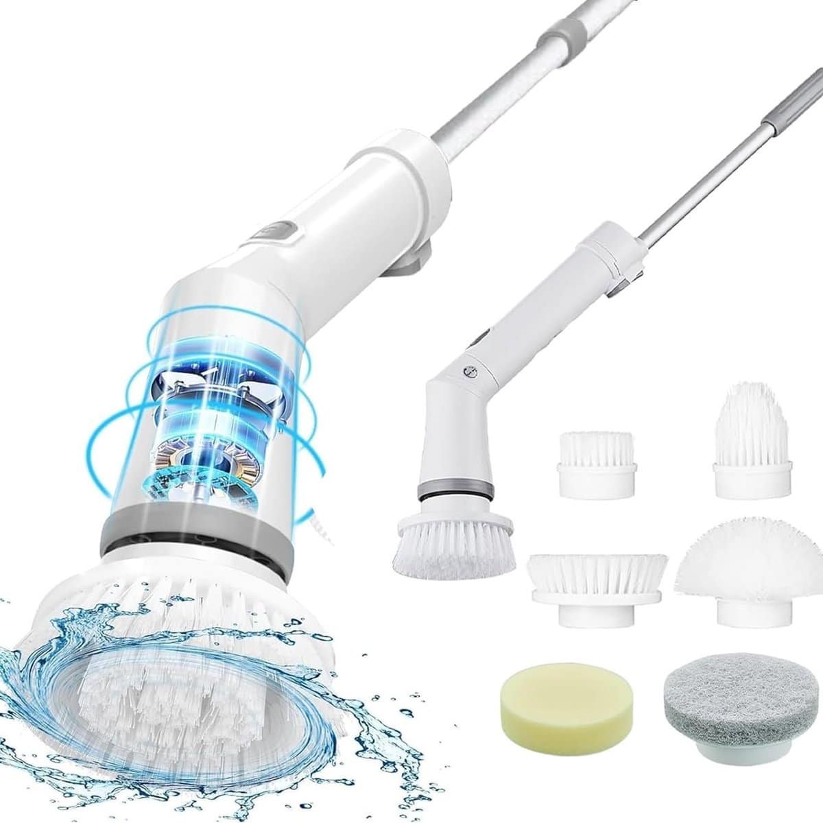Elektrische Schrobber met Verstelbare Steel en 6 Borstels voor Badkamer en Keuken