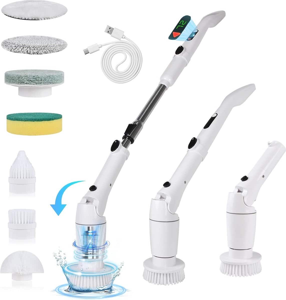 Elektrische Spin Scrubber met 8 Verwisselbare Borstelkoppen en Verstelbare Greep (64-119 cm) voor Keuken en Badkamer