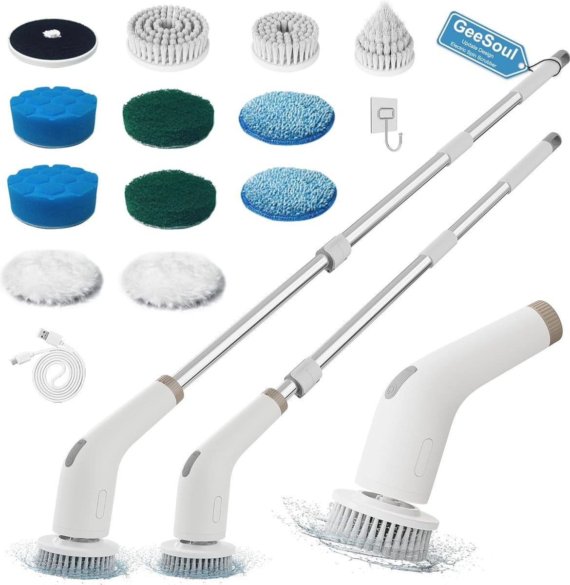 Ontdek de veelzijdige elektrische spinschrobber – een 13-in-1 reinigingsoplossing met 13 vervangbare opzetborstels en een handige haak voor opslag. Met onze krachtige borstel met afneembare roestvrijstalen handgreep instelbare lengtes van 40 tot 95 cm is schoonmaken gemakkelijker dan ooit. Kies uit 2 snelheden (300 RPM en 400 RPM) om grondig te reinigen in uw badkamer keuken op houten vloeren en meer. De lange werkingstijd van 90 minuten en snel opladen met de Type C-kabel maken het een must-have voor elke huishoudelijke taak. Perfect als cadeau voor uw geliefden! Twee jaar garantie inbegrepen.