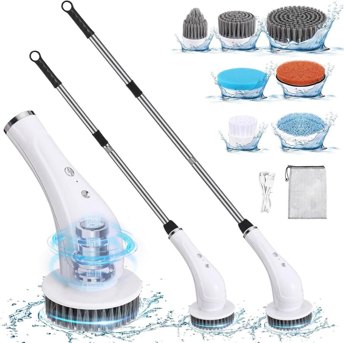 Elektrische spinschrobber – draadloze reinigingsborstel – 54 inch – 7 vervangbare borstelkoppen – 90 minuten werktijd – badkamer – keuken