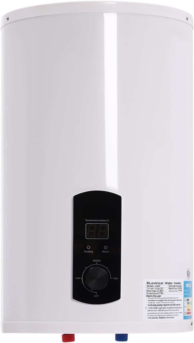 Deze hoogwaardige elektrische waterverwarmer is ontworpen voor langdurig gebruik, gemaakt van sterk, slijtvast kunststof en email. Met een vermogen van 2000 W en een roestvrijstalen verwarmingsbuis levert het snel warm water, met een capaciteit van 60 liter. De temperatuur is eenvoudig instelbaar van 25 tot 75 °C (77-167 °F) via een duidelijk digitaal display, waardoor het gebruiksgemak voor iedereen is gegarandeerd. De installatie is eenvoudig met meegeleverde accessoires, inclusief montagebeugels en schroeven. Geschikt voor diverse omgevingen zoals keukens, badkamers, en meer. Veilig in gebruik met IPX4 bescherming en een onverwoestbaar ontwerp voor jarenlang plezier.
