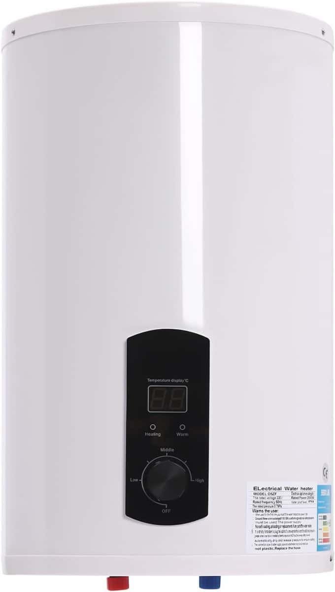 Deze elektrische waterverwarmer van 2000W is ideaal voor gebruik in keukens, badkamers, kapsalons, en meer. Hij heeft een stijlvolle witte afwerking en is ontworpen voor verticale montage. De waterverwarmer heeft een inhoud van 70 liter en biedt een temperatuurregelbereik van 25-75°C. De installatie vereist wat montagetijd, en ze is voorzien van een Europese stekker. Met een IPX4 waterdichtheid is deze verwarmer veilig in gebruik. Het pakket bevat de waterverwarmer, een kraan, een handdouche, slangen en handleidingen in verschillende talen. Let op de veiligheidsinstructies en zorg ervoor dat je de verwarmer vult met water voordat je deze inschakelt. Ideaal voor elk huishouden of commerciële toepassing!