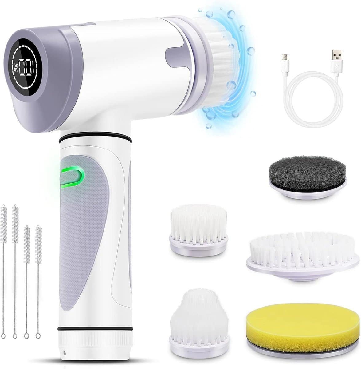 Deze alles-in-één spin-scrubber wordt geleverd met 5 verschillende borstelkoppen, waardoor je moeiteloos verschillende oppervlakken zoals vloeren, tegelvoegen, hoeken en keukenvijlen kunt reinigen. De elektrische reinigingsborstel heeft een IPX7-waterdichtheid, waardoor je je geen zorgen hoeft te maken over waterschade.