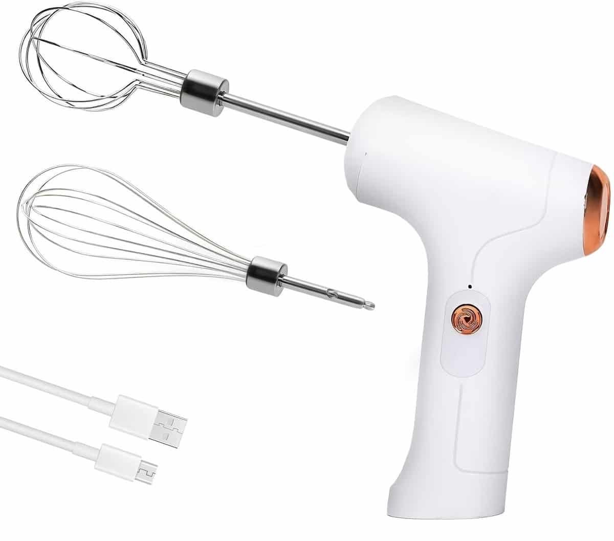 Handmixer | Draadloze elektrische handmixer Geschikt voor thuisgebruik, USB-oplaadbaar, 304 roestvrij staal, Geschikt voorzien van 2 afneembare messen, 3 snelheidsstanden Geschikt voor bakken in de keuken (wit)