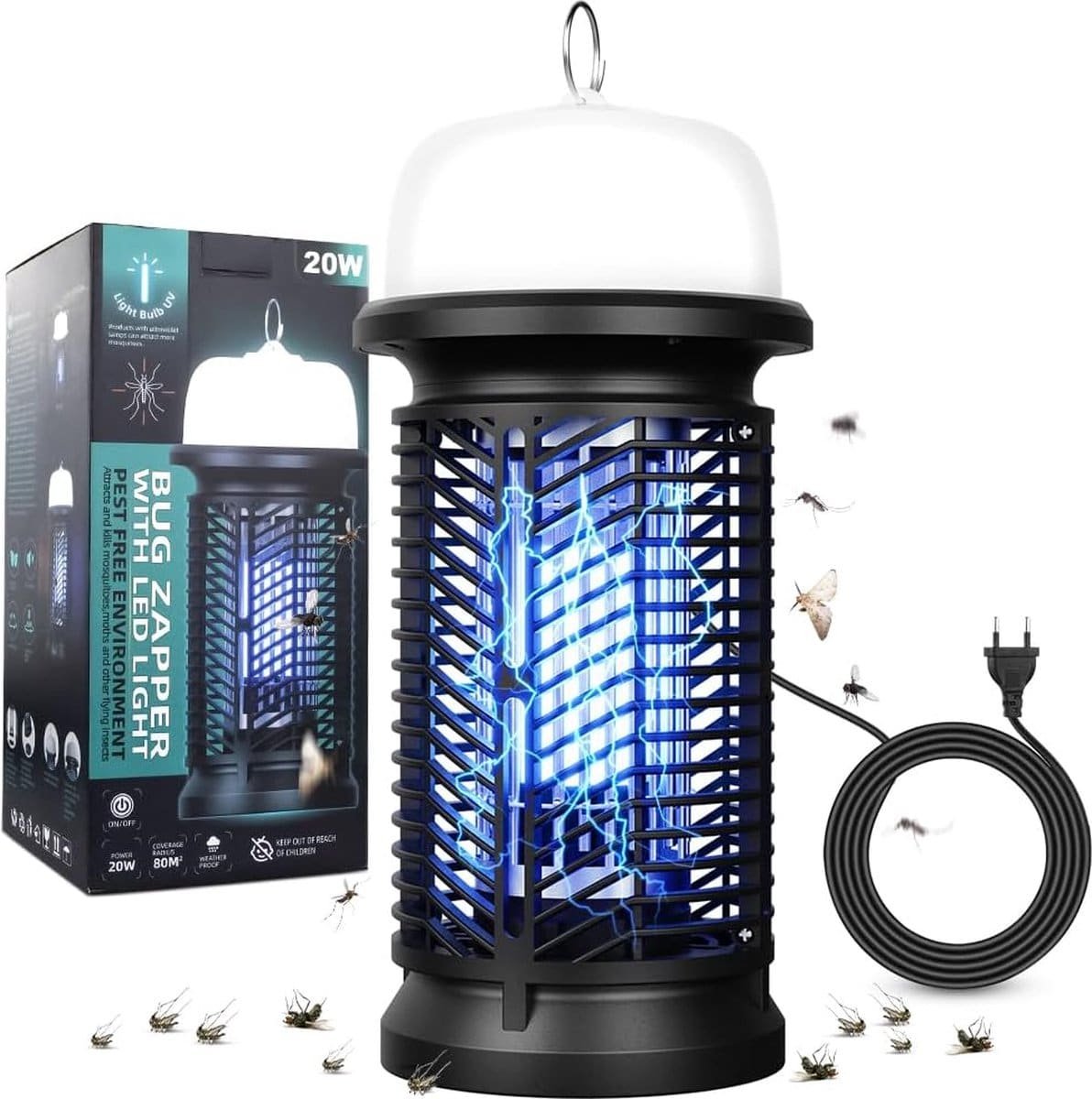 Muggenlamp – Effectieve & Milieuvriendelijke Insectenverdelger Effectieve en milieuvriendelijke muggenlamp – Bescherm jezelf en je gezin tegen muggenbeten! Met onze 20 W insectenverdelger hoef je je geen zorgen meer te maken over zoemende en jeukende huid door muggenbeten. Deze muggenlamp maakt gebruik van een nieuw type uv-gloeilamp met een golflengte van 365-395 nm en een 360° open design om vliegende insecten sterk aan te trekken en ze onmiddellijk te vernietigen met 4500 V hoogspanningselektrische schokken. De fysische muggencontrolemethode zorgt ervoor dat jij en je gezin beschermd zijn tegen muggenbeten.