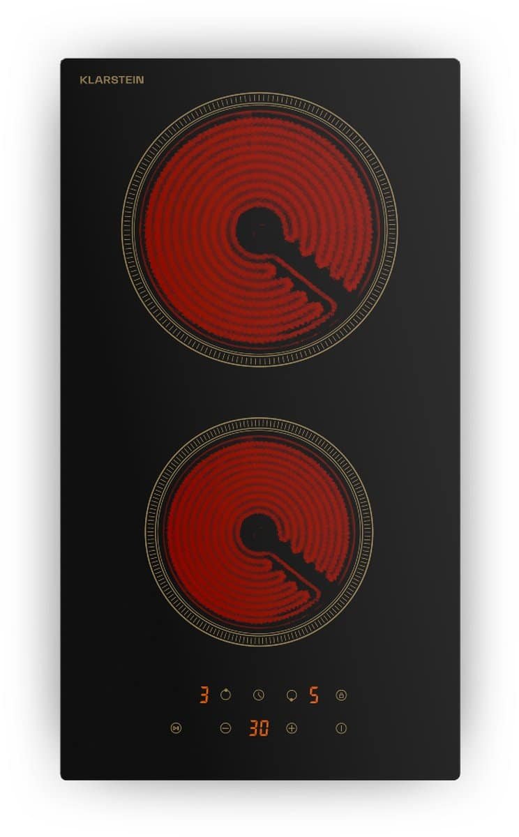 Klarstein Victoria keramische kookplaat – 30 cm retro elektrische kookplaat met 2 zones, 3000 W, touchbediening, timer, kinderslot en restwarmte-indicator, keramisch glazen oppervlak, compacte kookplaat voor in de keuken