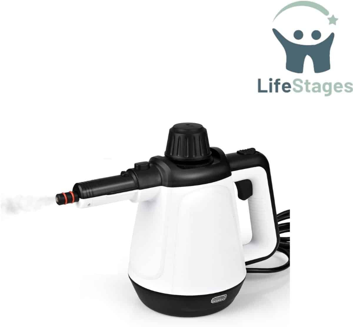 LifeStages – Zetelreiniger – Handstoomreiniger – 430ml – 1200W 3,5 Bar Stoomreiniger voor Sofa met 9 Accessoires – Elektrische Stoomreiniger voor Vlekken op Ramen, Bed, Matrassen, Tapijt, Auto, Keuken
