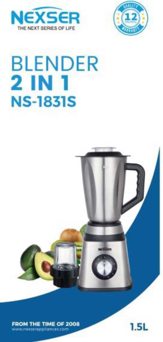 De Nexser 1.5L blender is een krachtige en veelzijdige keukenmachine, ideaal voor smoothies, shakes, soepen, sauzen en het crushen van ijs. Met een 600W motor en 6 roestvrijstalen messen blendt deze blender moeiteloos zowel zachte als harde ingrediënten.