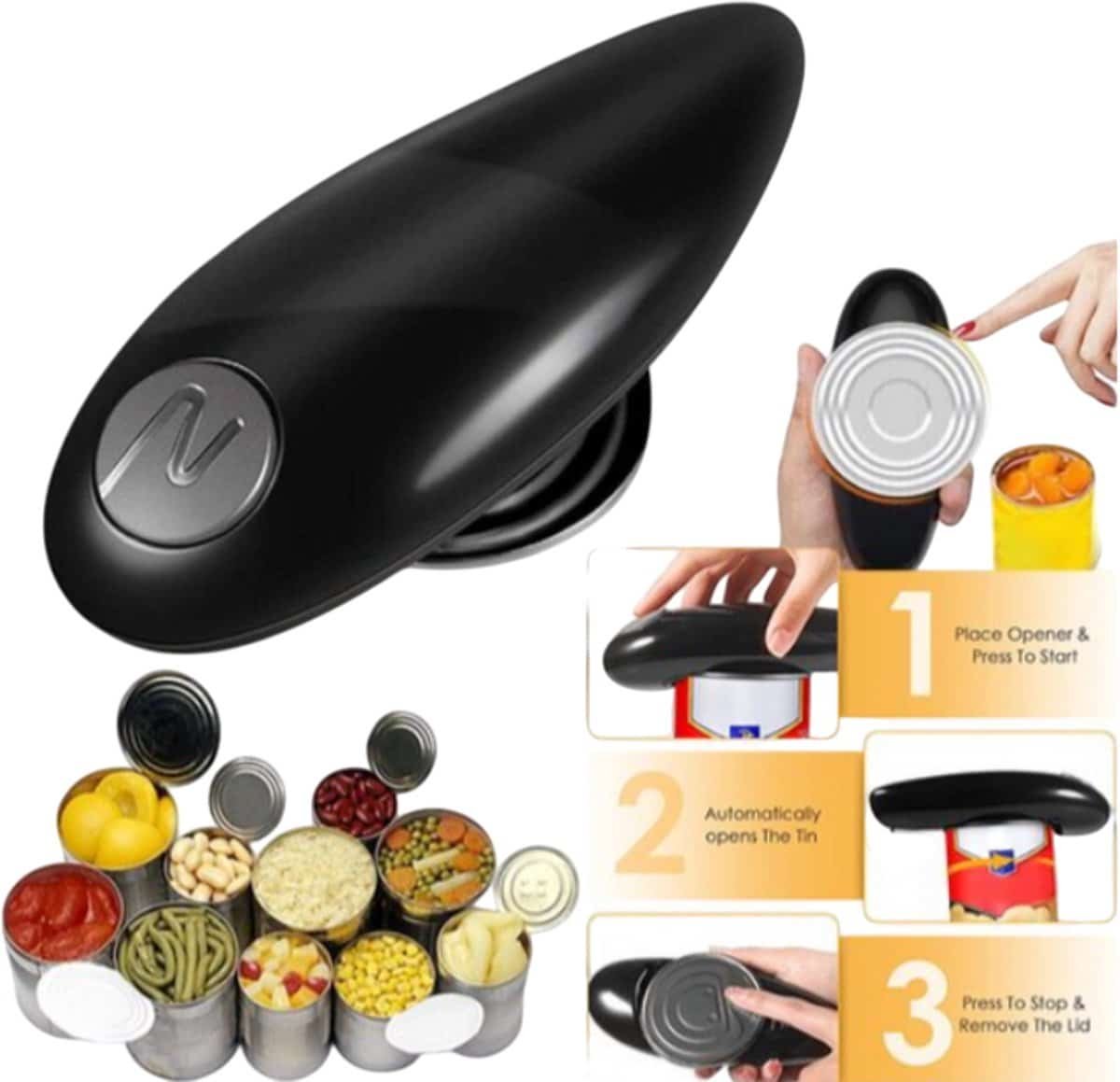 Dankzij het compacte en ergonomische ontwerp ligt deze opener comfortabel in de hand en neemt hij minimale ruimte in op uw keukenblad. Of u nu een snelle maaltijd bereidt of een uitgebreid feestmaal voorbereidt, deze elektrische opener zal uw keukenwerkzaamheden vereenvoudigen en versnellen.