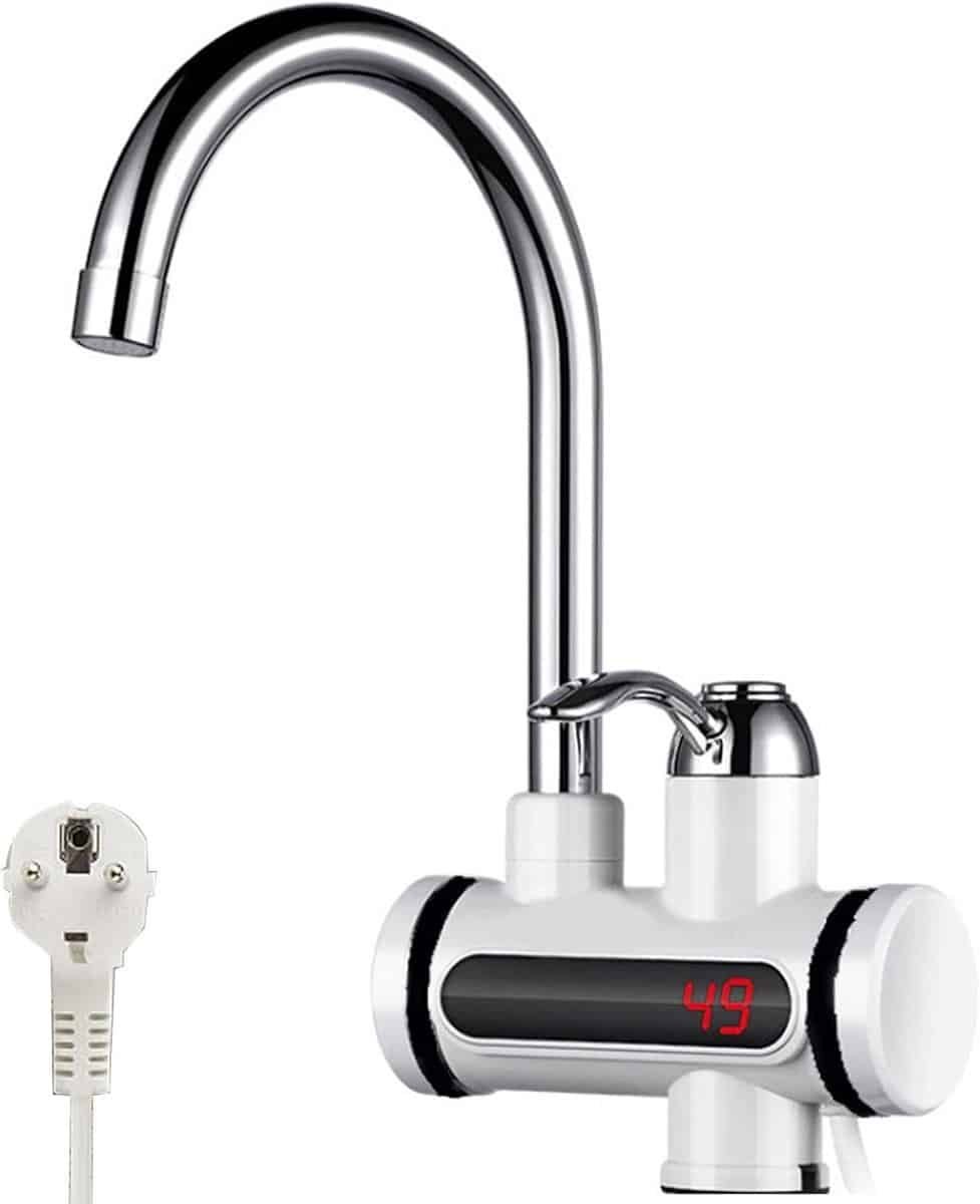 Snel verwarmende elektrische kraan: Onze elektrische warmwaterkraan heeft een hoog vermogen van 3000 W en een ingebouwde verwarmingsbuis die binnen 3-5 seconden direct opwarmt. Met de draagbare handgreep kunt u het warme of koude water van uw kraan gemakkelijk aan- en uitzetten. De stekker heeft een lang genoeg snoer voor eenvoudige aansluiting en voldoet aan al uw behoeften.