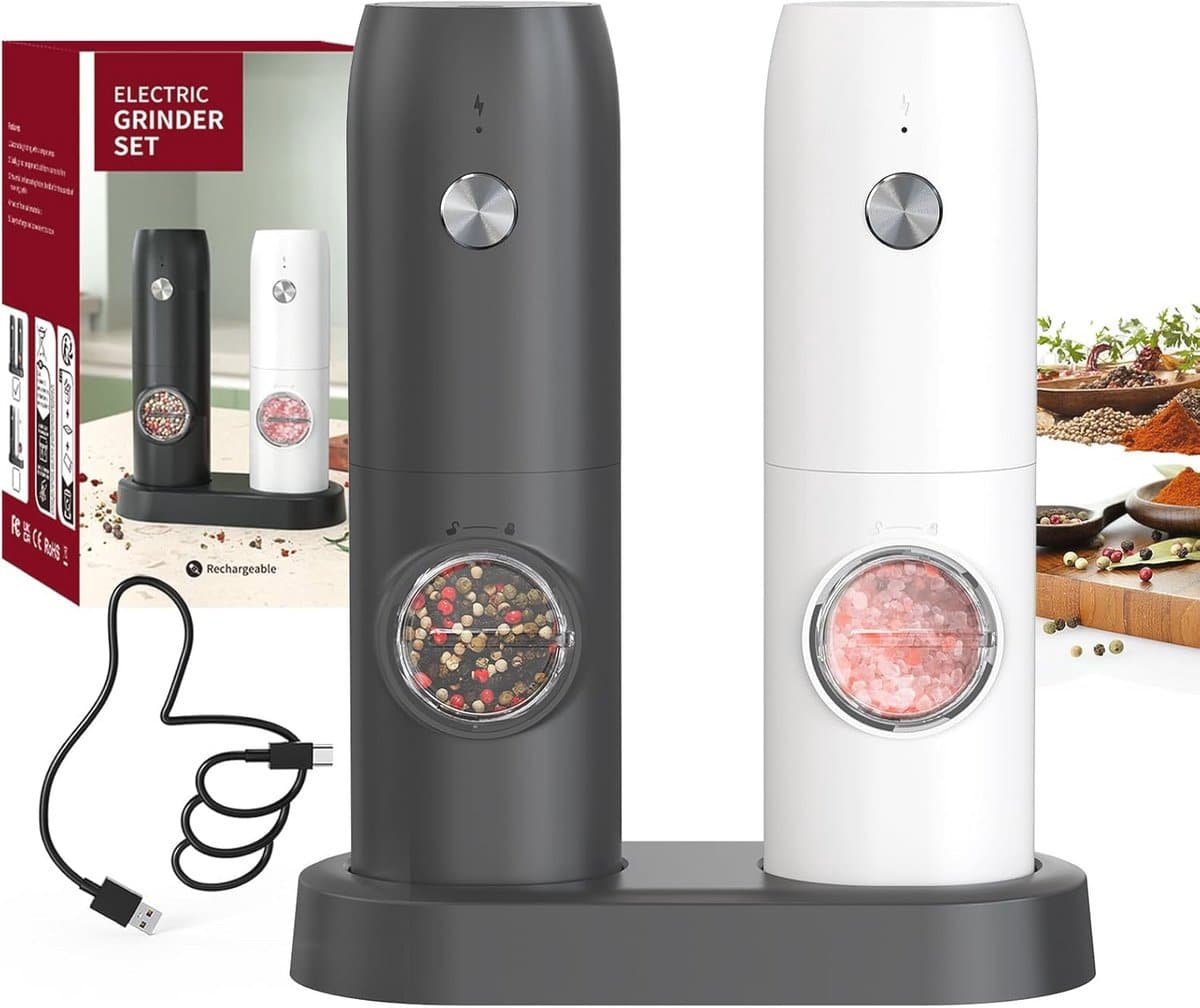Oplaadbare Elektrische Pepermolen Set – Keramische Maalmechanisme, Voor Thuis en Keuken