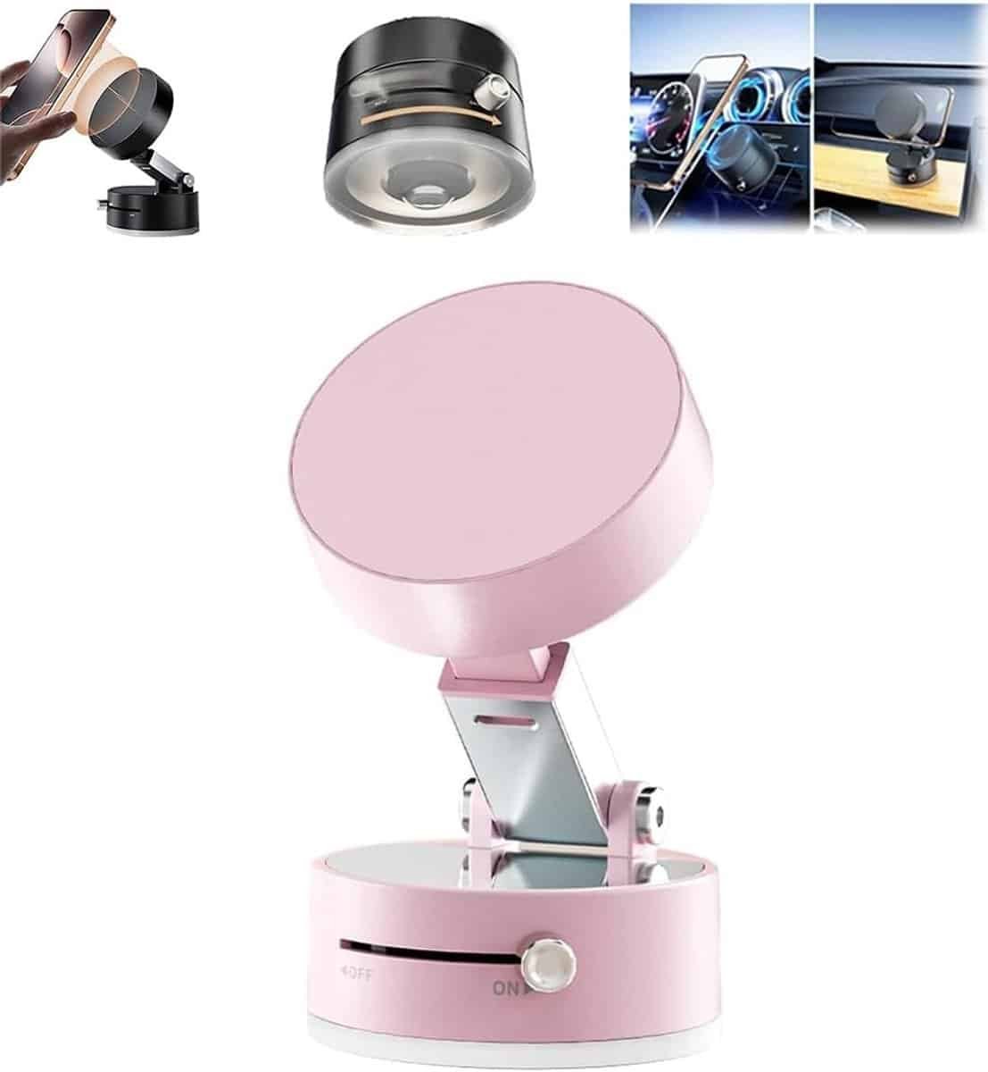 Opvouwbare magnetische vacuümtelefoonhouder – 360° elektrische zuignap voor in de auto, dubbelzijdige draaibare standaard voor auto, spiegel, sportschool, keuken, handsfree draagbare telefoonhouder (roze)