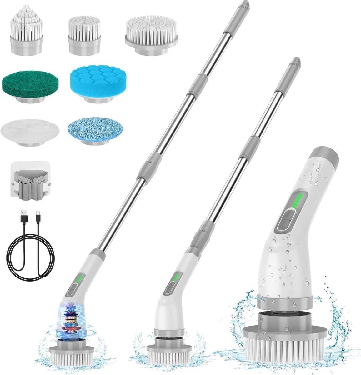 Met de twee snelheden en het ruime accessoireset kun je de schrobber gebruiken voor bad, keuken, auto, tegels en andere oppervlakken. De verlengarm zorgt ervoor dat je ook moeilijk bereikbare plekken gemakkelijk kunt schoonmaken zonder te bukken.