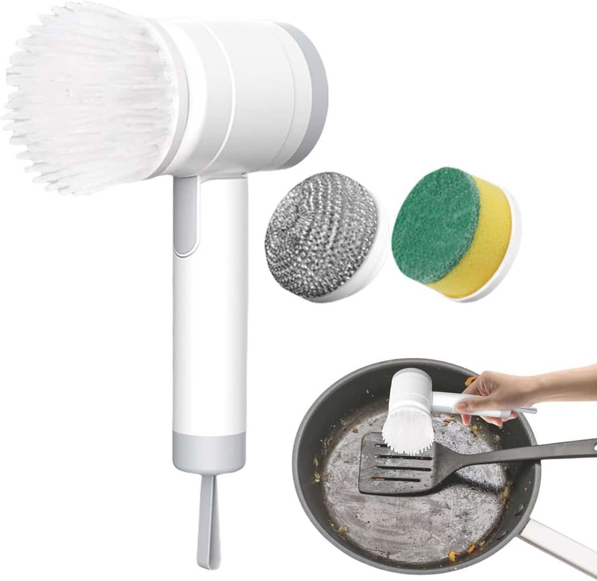 Reinigingsborstel – Elektrische Schrobber – Draadloze Keukenreiniger met Type – C Oplaadbare Batterij – Voor Keuken, Badkamer & Huishoudelijke Reiniging – 1200 mAh – Inclusief Nylon Borstel & Schuurspons – Wit