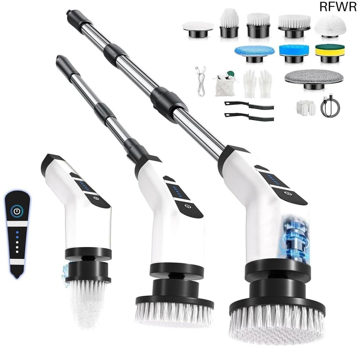 RFWR® Elektrische Reinigingsborstel met 10 Verwisselbare Borstels en Verstelbare Handgreep voor Badkamer, Keuken, Auto en Vloer