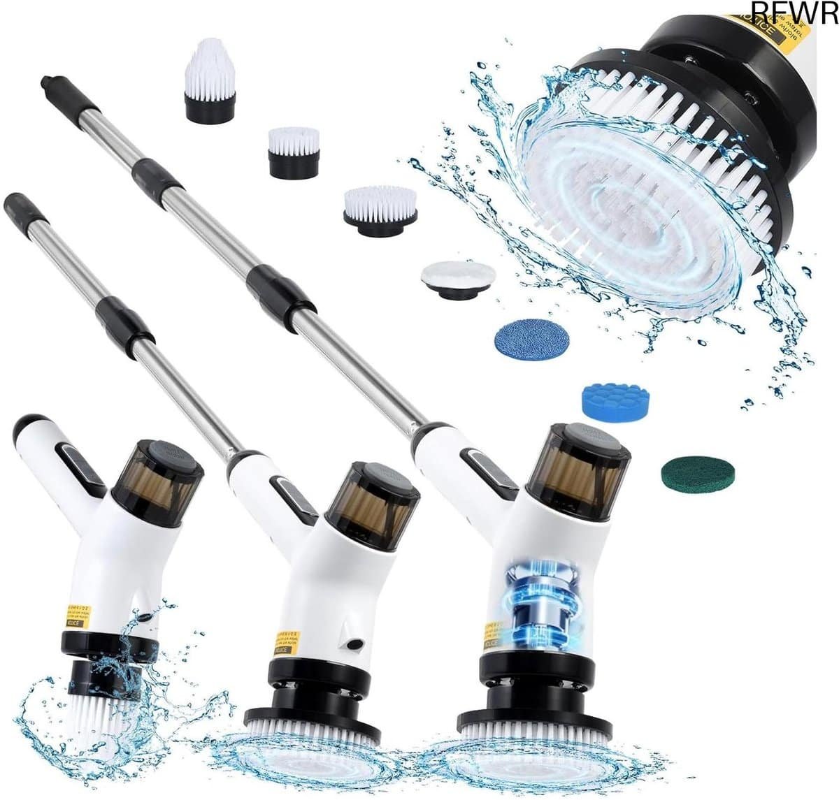 RFWR® Elektrische Reinigingsborstel met 7 Verwisselbare Borstelkoppen en Verstelbare Verlengstang voor Badkamer, Keuken en Auto