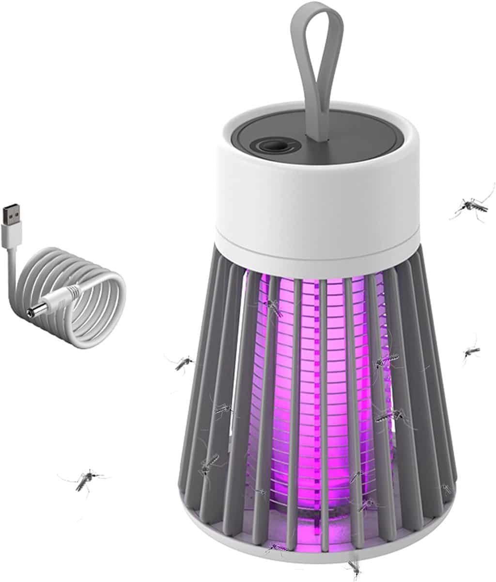 Sander Shop Insectenverdelger, elektrische uv-lamp, 360 graden, muggenlamp, anti-muggen, USB-oplaadbaar, draagbaar, anti-insectenlamp voor binnen, outdoor, keuken, baby, niet giftig, weinig lawaai, met ring-grijs