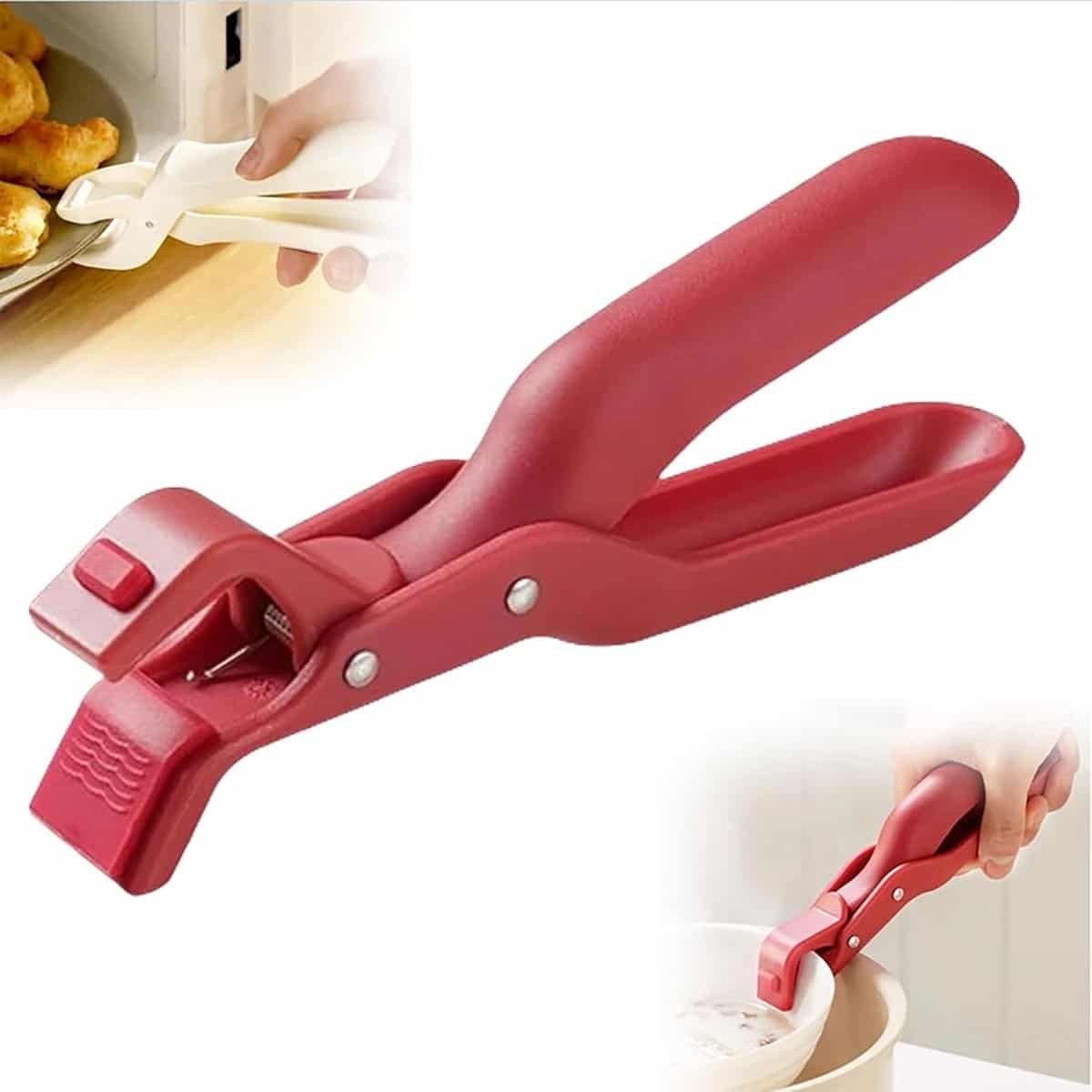 Ergonomisch ontwerp: Deze tang heeft een ergonomisch ontwerp dat moeite bespaart, waardoor u moeiteloos hete gerechten met één hand kunt optillen en dragen.