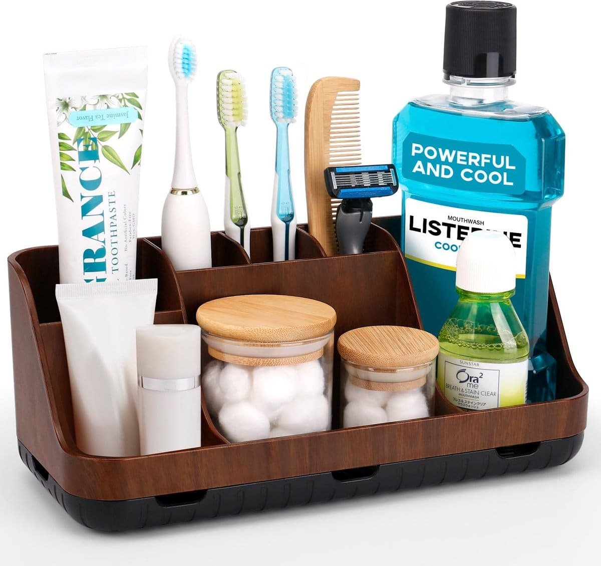 HOOGWAARDIG MATERIAAL: De tandenborstelhouder is gemaakt van hoogwaardig kunststof. Afgeronde en gladde randen, geen bramen, geen zorgen over het bezeren van je handen. Zeer stabiel en praktisch, valt niet snel om. Geen zorgen over breuk of roest. GROTE CAPACITEIT: De badkamerorganizer is uitgerust met 2 niveaus en 7 sleuven, de capaciteit is voldoende om verschillende soorten badkameraccessoires op te bergen, wat veel opbergruimte bespaart op het badkamerblad. AFNEEMBAAR ONTWERP: De elektrische tandenborstelhouder heeft een afneembaar ontwerp, waardoor hij zeer eenvoudig schoon te maken is. U kunt de basis van de tandenborstelhouder verwijderen en de binnenkant eenvoudig en efficiënt reinigen met zeep of schoon water. ANTISLIP- EN AFVOERONTWERP: De onderkant van de tandenborstelhouder is voorzien van verhoogde rubberen antislipstrips. Deze verhoogde antislipstrips voorkomen dat de tandenborstelhouder valt en krassen op het aanrecht maakt. De tandenborstelhouder is ontworpen met drainagegaten over het gehele oppervlak, die op elk moment kunnen worden afgetapt om te voorkomen dat er vocht ophoopt op de bodem van de tandenborstel en tandpasta, zodat de tandpastahouder droog en netjes blijft.