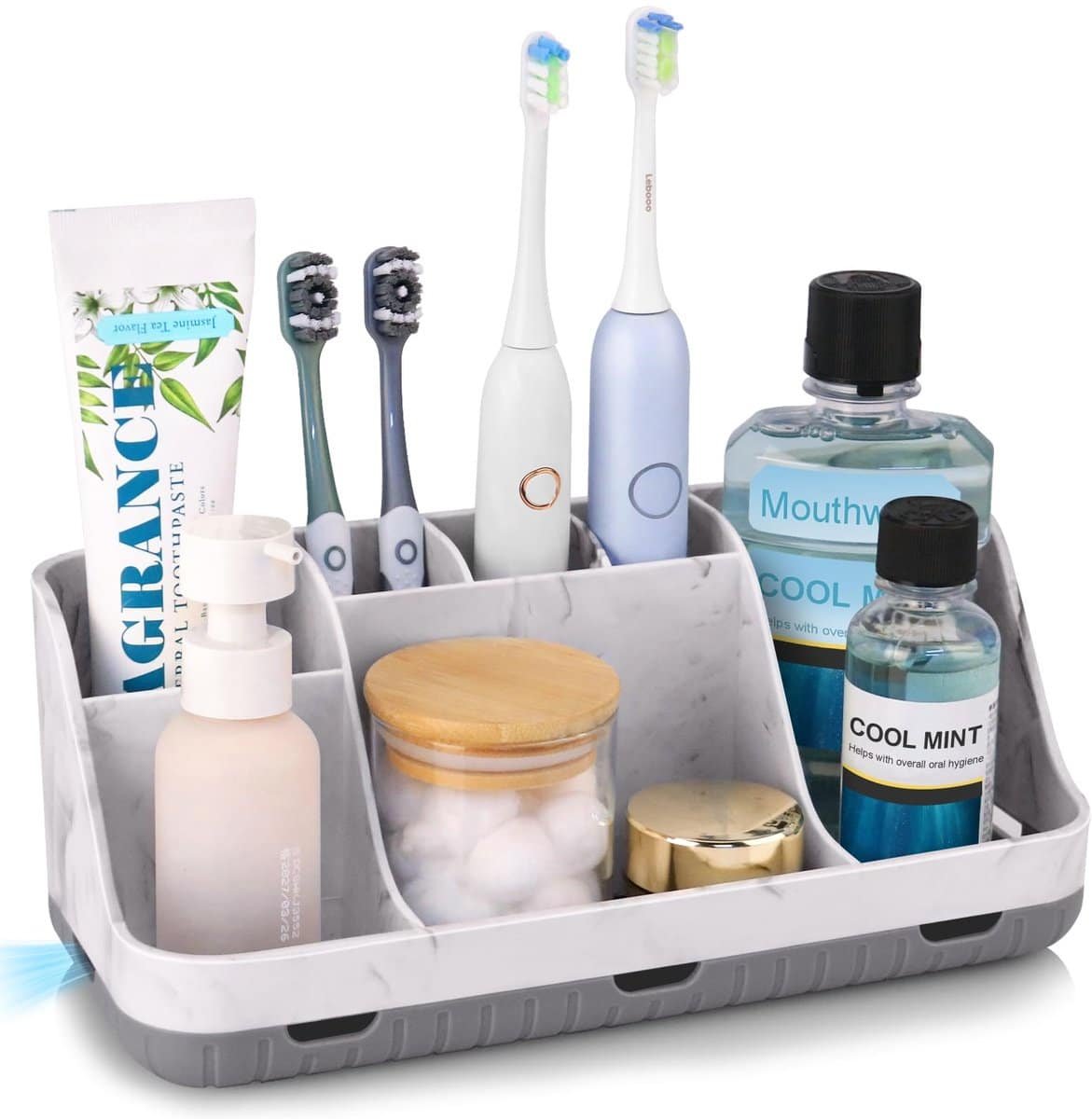 Tandenborstelhouder voor badkamerorganizer, elektrische tandenborstel- en tandpastahouder, 7 sleuven badkamerorganizer voor badkamer, keuken en gezin (marmergrijs)